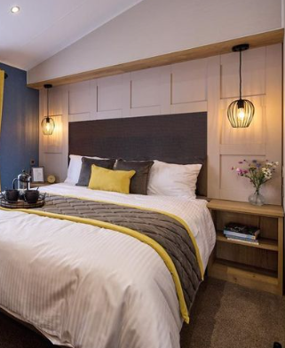 The Gainsborough’s elegant design doesn’t stop at the front-end living space, with both bedrooms boasting feature panelling, blue accent wall boards, and a striking co-ordinated bedding pack.